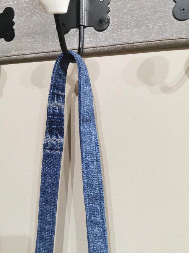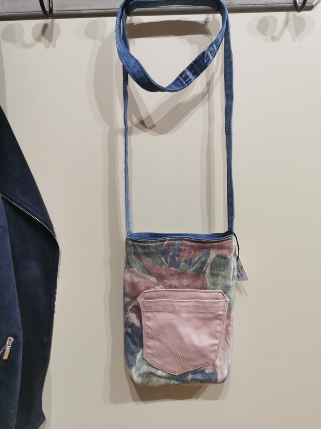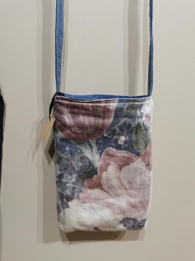 ✨ Un sac bandoulière simple et charmant, mêlant du jean d'un côté et du tissu ancien aux couleurs douces et délavées de l'autre.