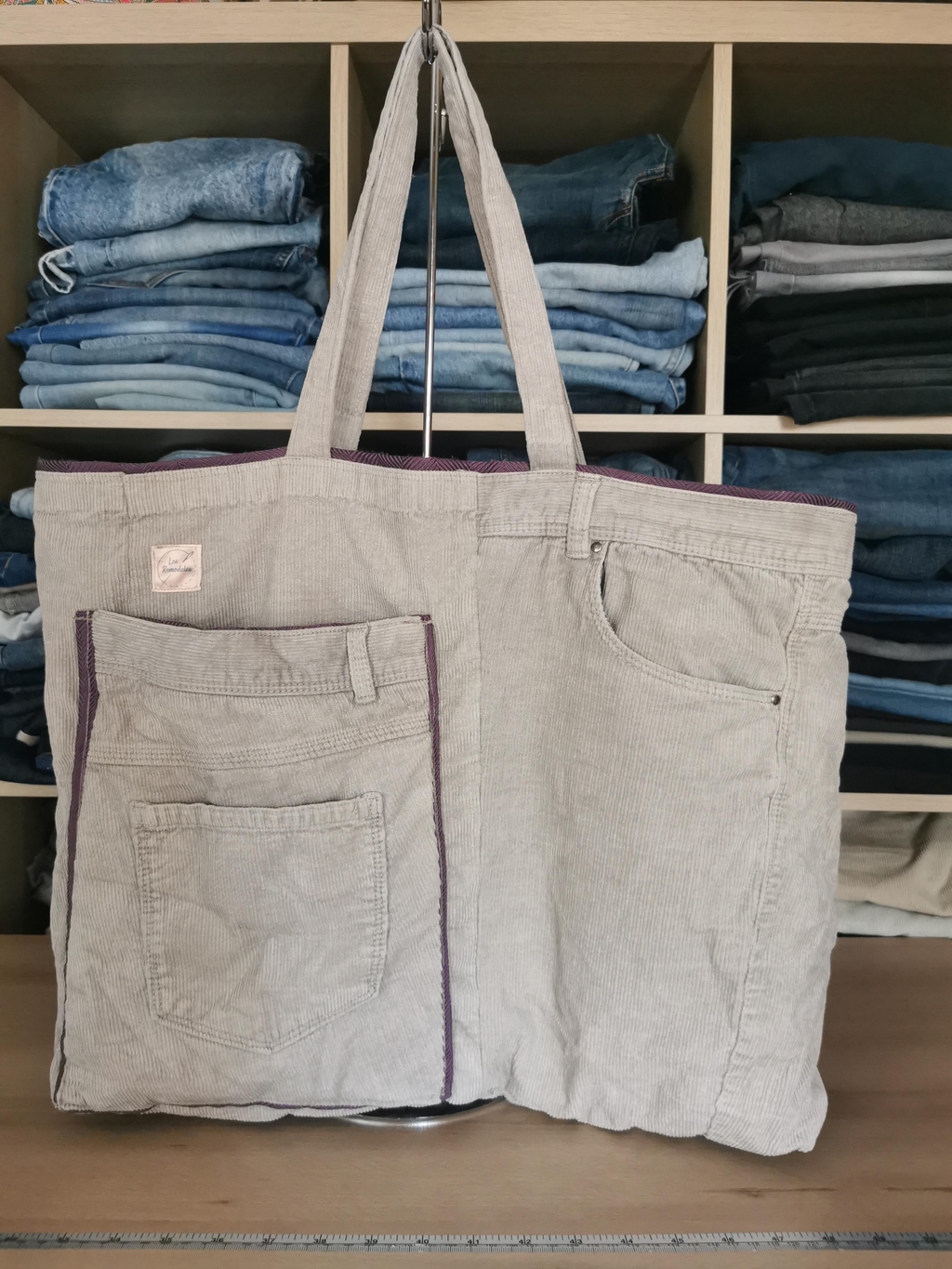 Découvrez ici un aperçu de mes créations passées : des sacs cabas réversibles uniques, conçus à partir de tissus de seconde main soigneusement sélectionnés.